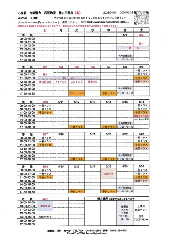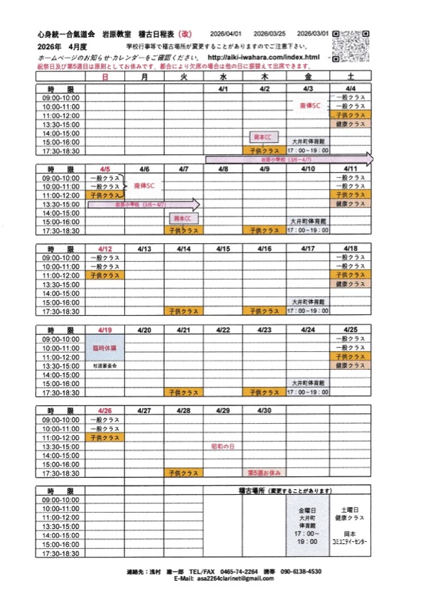 岩原教室 稽古日程表